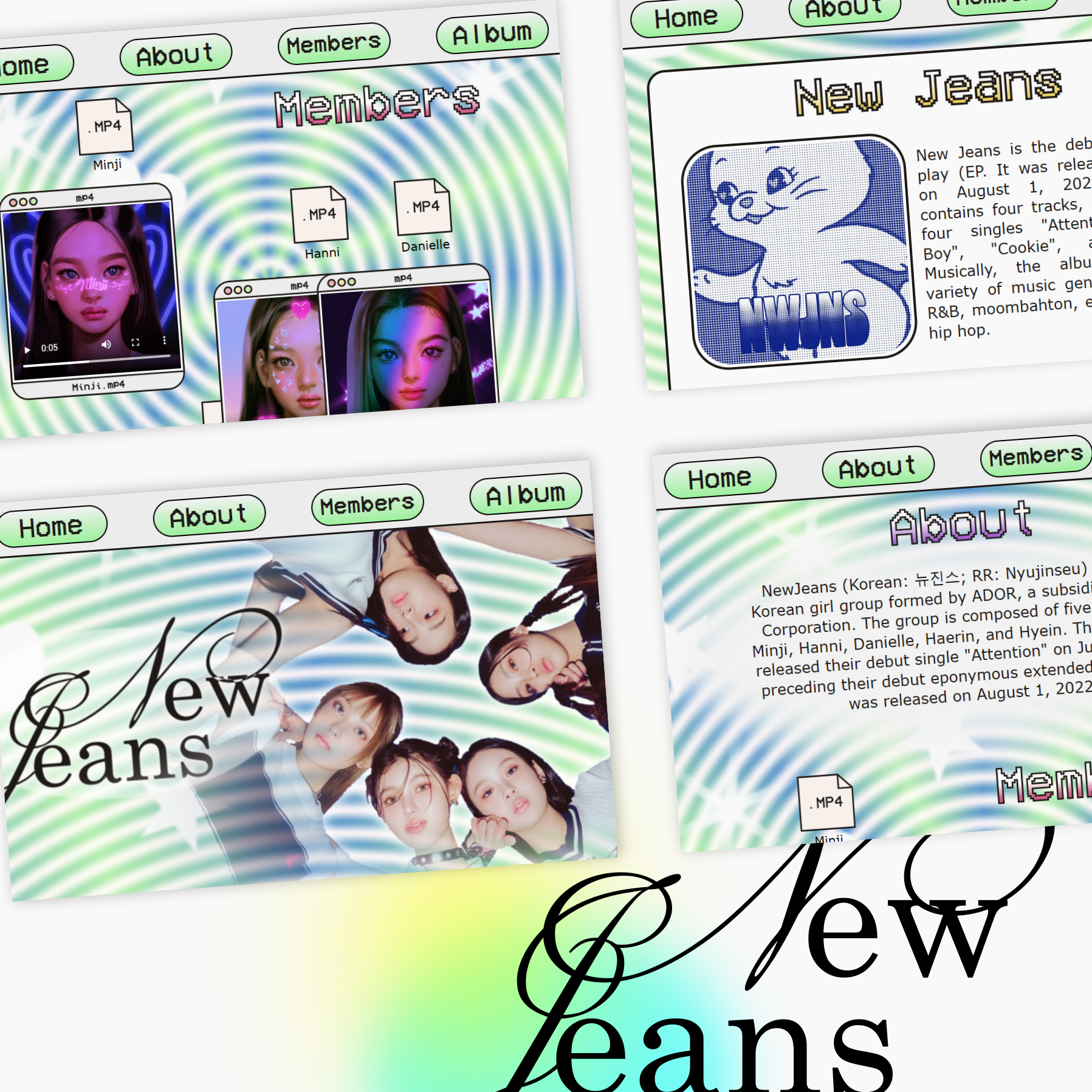I like to listen music, one that I really like in 2022 is the NewJeans songs, female idol group from Korea. Not only the songs, their concept really inspired me while I'm learning programming by myself. So, I came up with the idea to creating a website about NewJeans. I did all of it, I edited the mockup website, made the graphics, and most of the assets too.